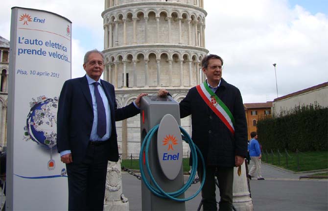 Pisa es la primera ciudad italiana de experimentar la carga rápida para vehículos eléctricos, lo que supondrá inicialmente las actividades de la empresa Enel presente en diferentes lugares en Pisa, y que luego se extendió a todos los ciudadanos de Pisa, en lugares que se determinen conjuntamente con la comunidad. » Estamos encantados de acoger un nuevo juicio de Enel, después de que el proyecto de e-mobility – dijo el alcalde Marco Filippeschi – también porque hemos demostrado con hechos que es una ciudad sensible a las innovaciones y buen comportamiento con el medio ambiente. En dos años y medio los pisanos han recorrido en kilómetros con cero emisiones, la misma distancia que separa a la Tierra de la Luna».